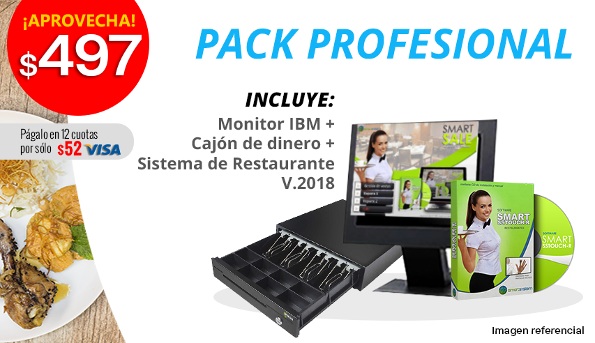 Caja registradora táctil + Impresora de boletas y facturas; Usa toma de pedidos con tablet.